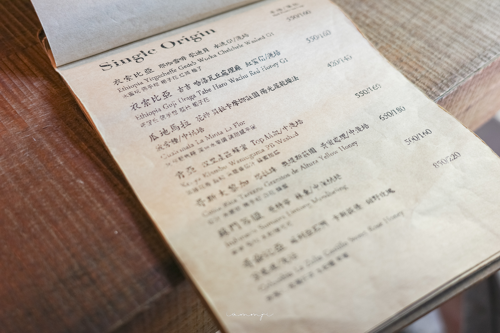 자리를 잡고 메뉴판을 살펴봅니다. 저희는 메뉴판 첫 번째 페이지에 있던 싱글 오리진(Single Origin) 중 첫 번째로 기재되어 있는 에티오피아 예가체프로 2잔 주문했습니다. 참고로 싱글 오리진은 산미가 있는 커피로 산미를 싫어하시는 분들이라면 블랜드로 주문하는 걸 추천드립니다.