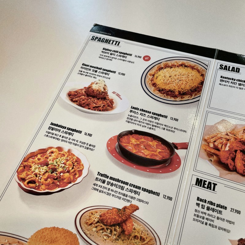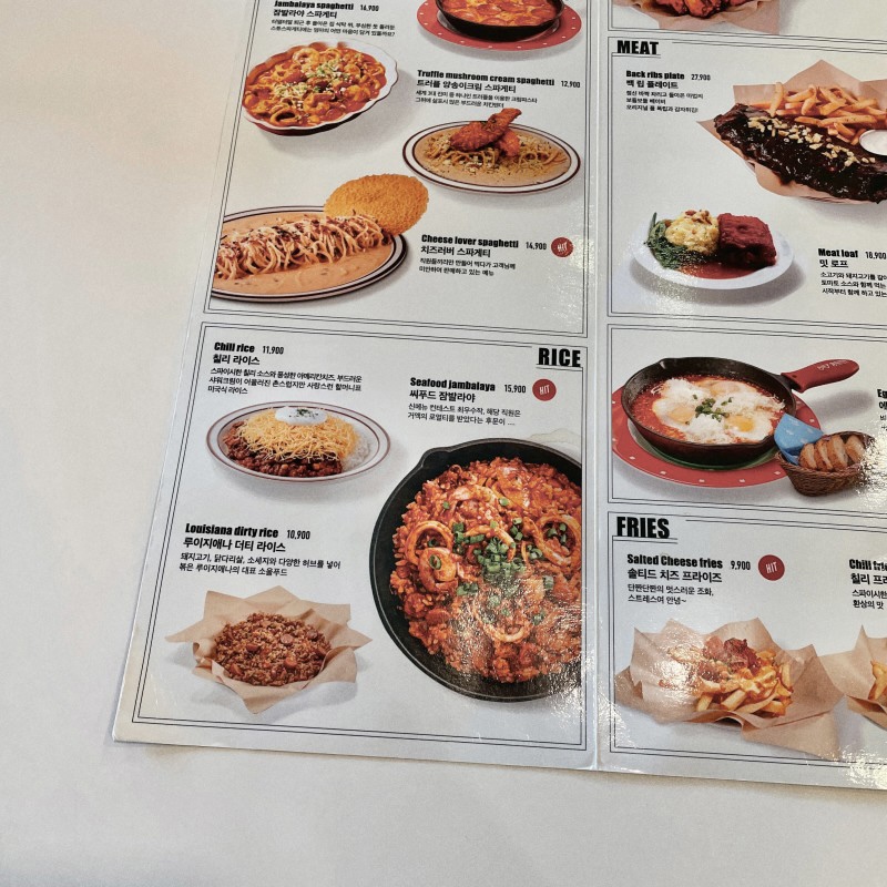 메뉴판에는 큰 링 오징어들이 많아보였는데 실제론 해산물이 많지 않았던 점은 살짝 아쉽다. 개인적으로 빅보이 칠리 스파게티보다는 씨푸드 잠발라야가 더 맛있었다.