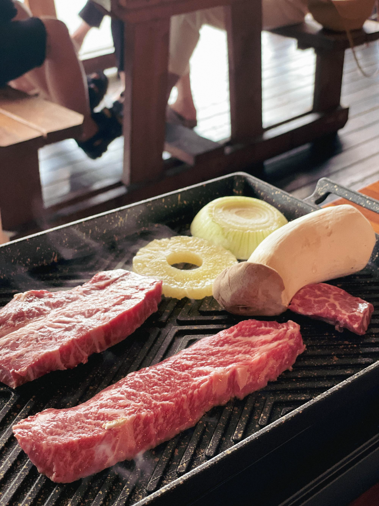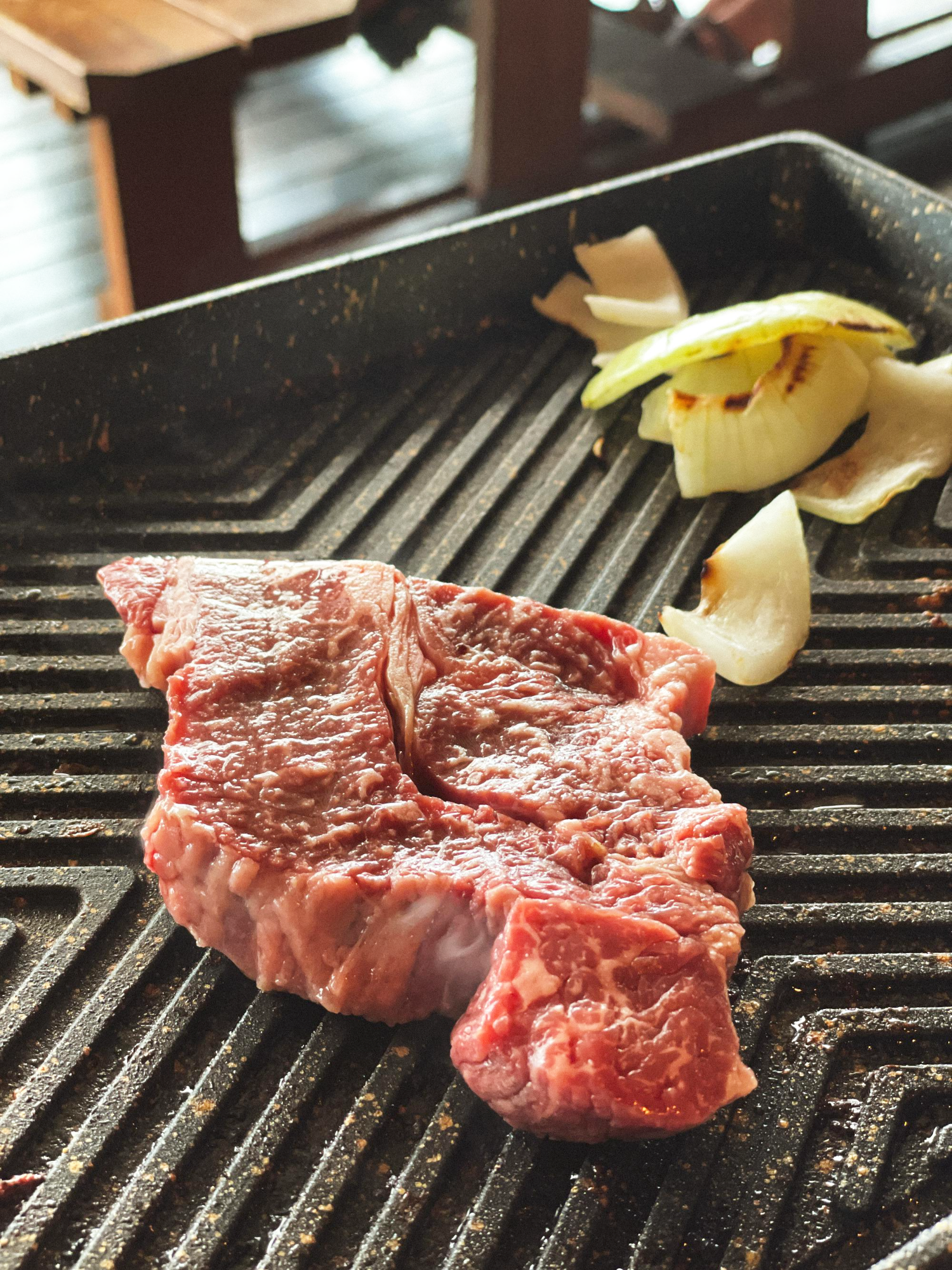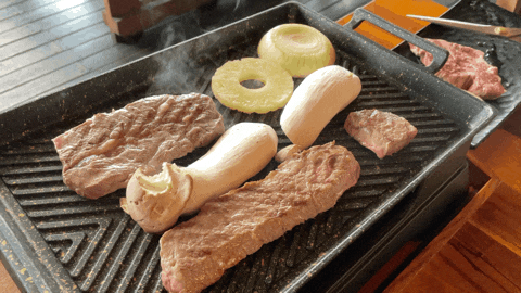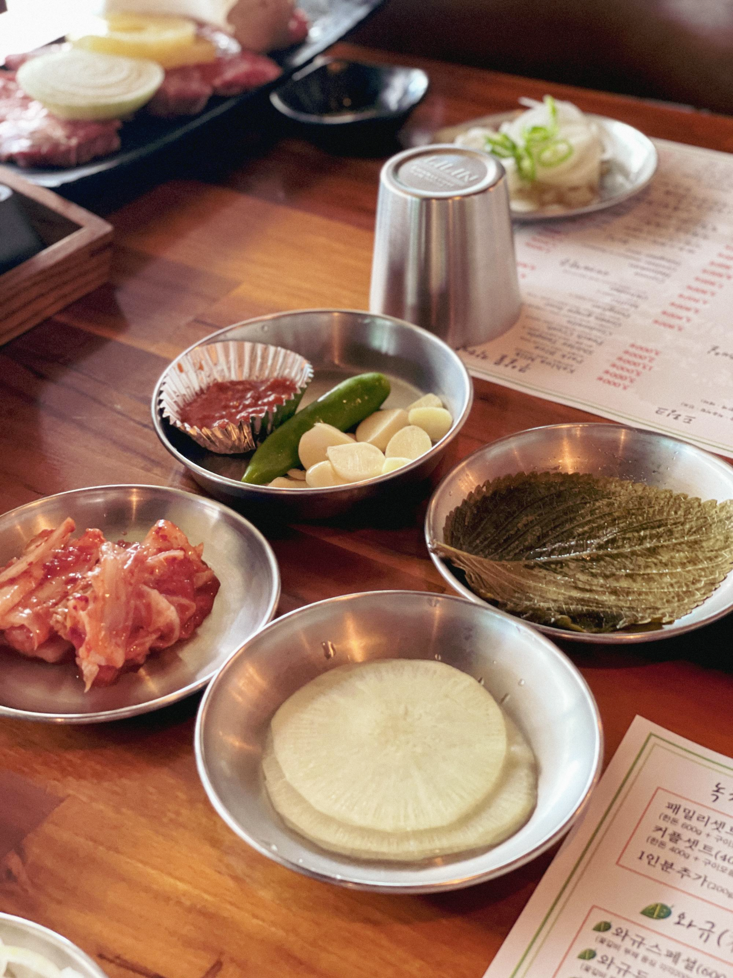 맛 간장에 절여진 양파와 와규를 싸서 한입먹어보니 소고기 맛집이다. 경치 좋거나 인테리어가 예쁜 고깃집을 오면 보통 고기 맛이 덜한데 꽃갈비랑 부채살이 너무나 부드럽고 고소했다. 와규는 정말 오랜만에 먹어보는데 소고기 시키길 잘했단 생각이 들었다.
