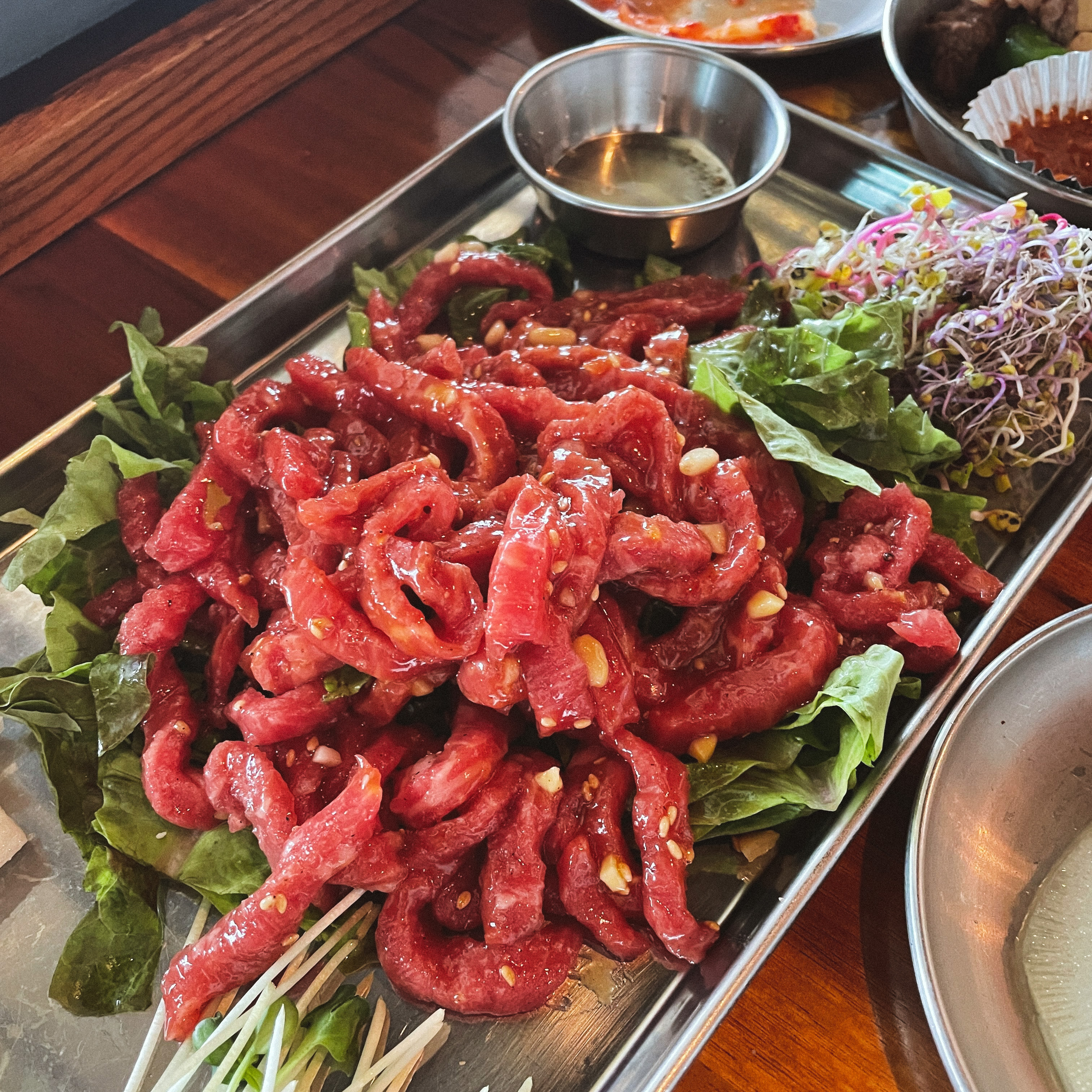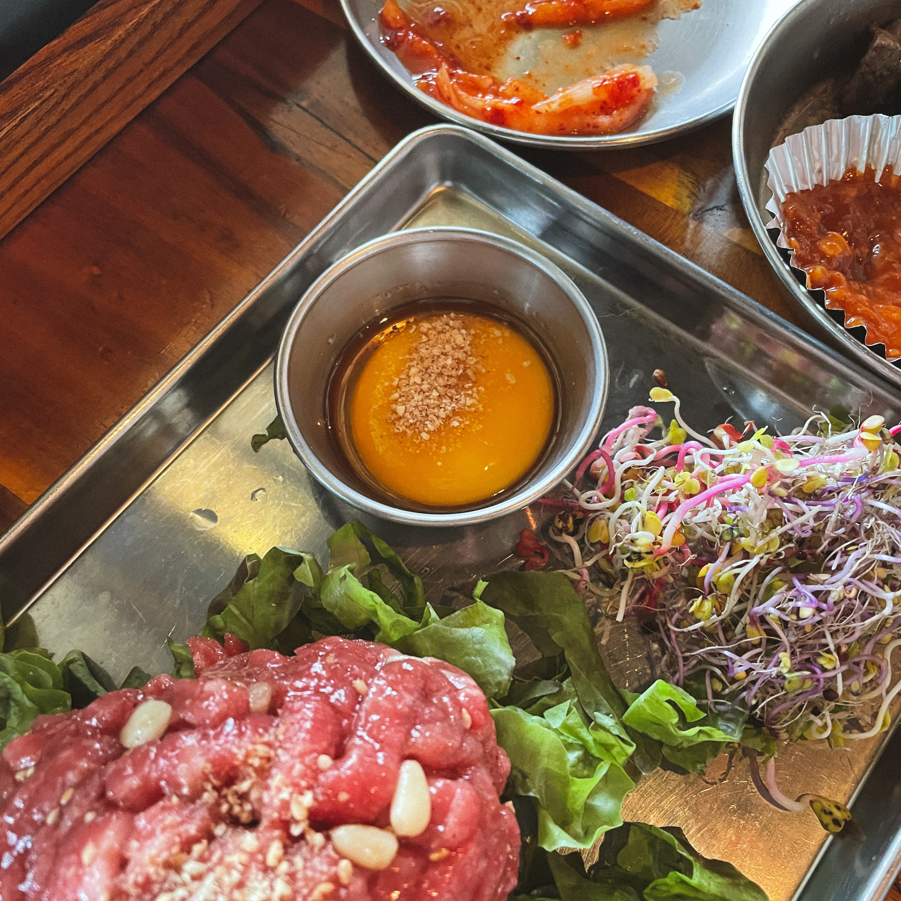 소고기를 다 먹을때쯤 이미 배불렀지만 메뉴 하나만 먹고 가기엔 아쉬워서 '와규육회(200g, 21000원)'를 추가로 주문햇다.