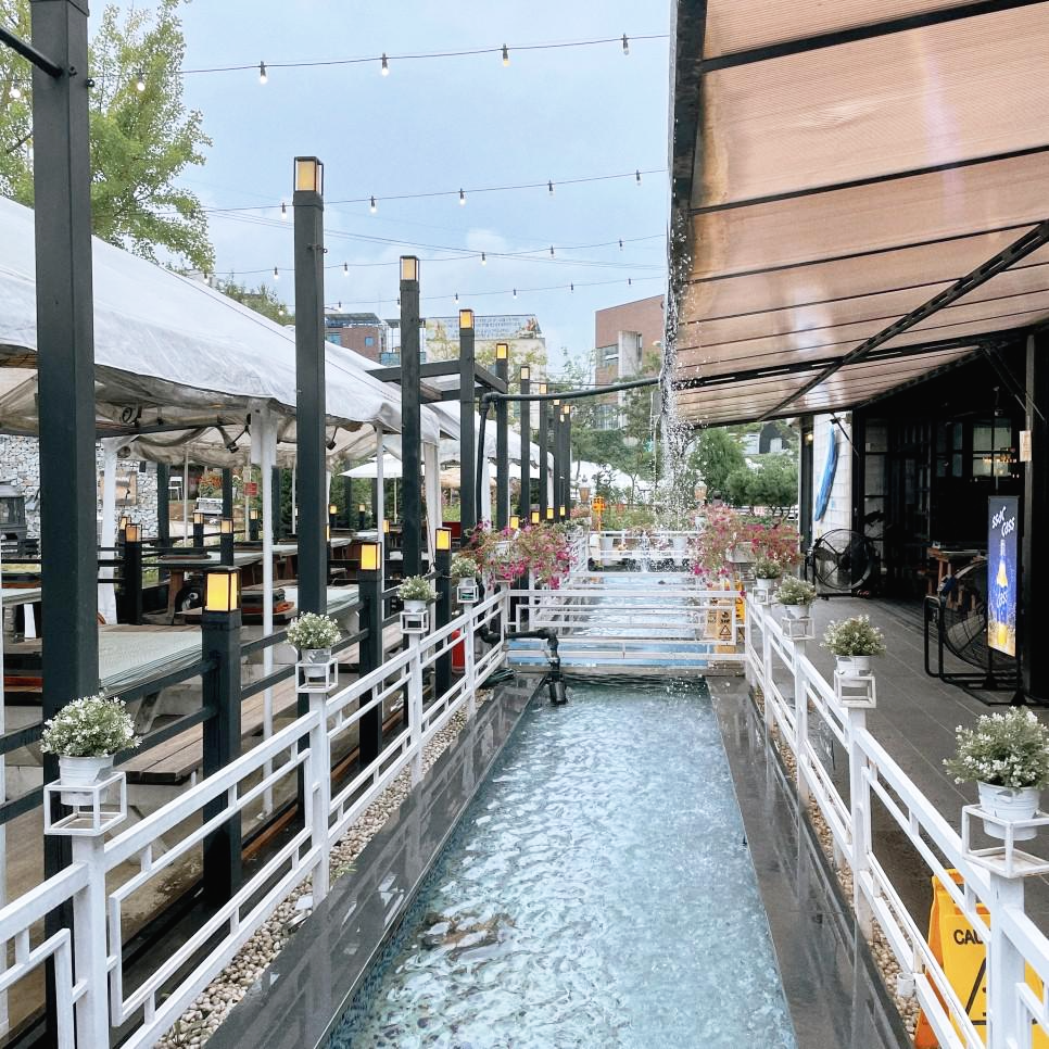 가게로 들어가는 길도 이색적이다. 야외 테이블 사이로 수로가 있었고, 이 날 비까지 왔던터라 지붕에서 수로로 물이 떨어지는 소리가 계속 나니 계곡 ASMR을 듣는 거 같았다.