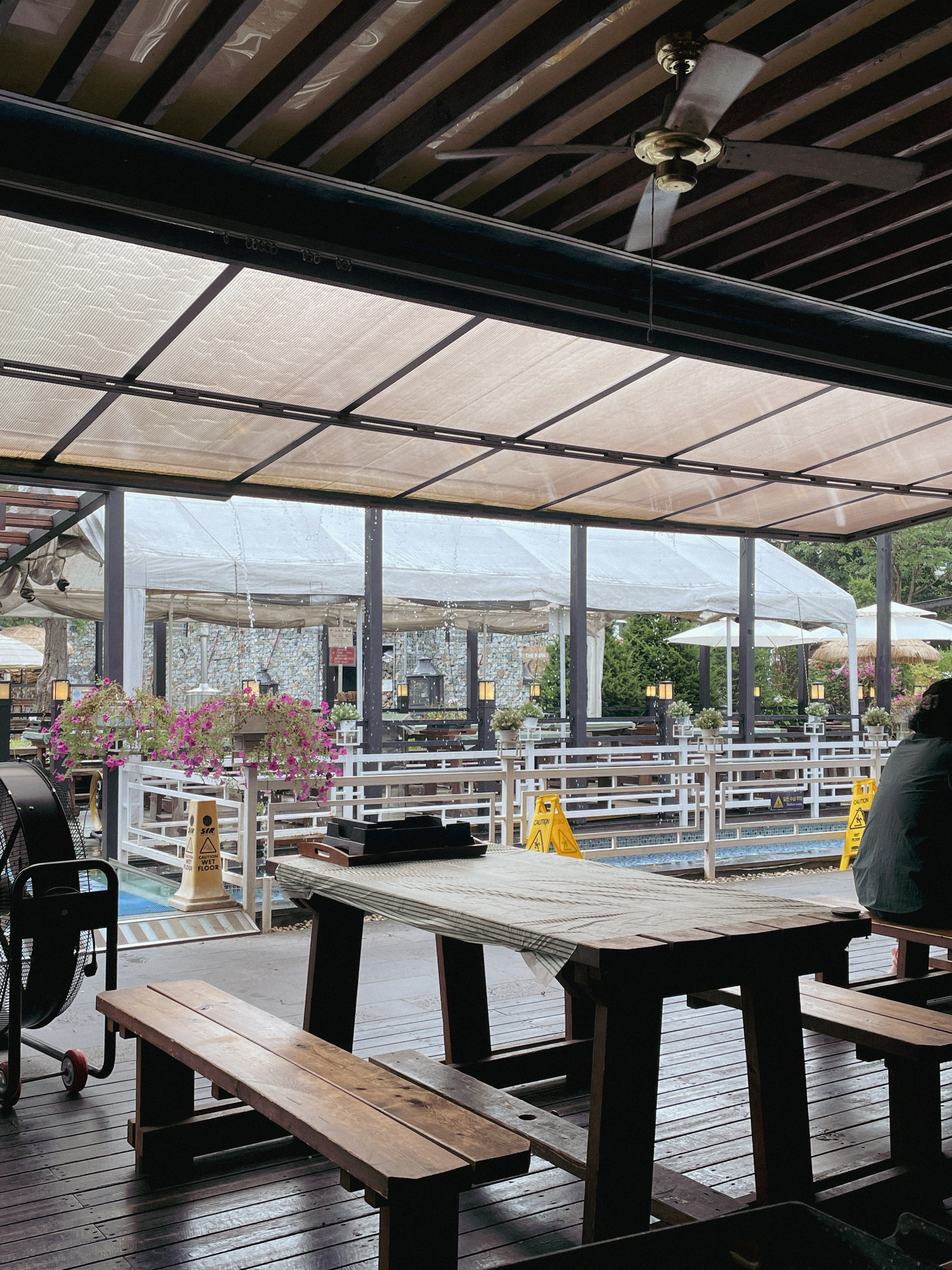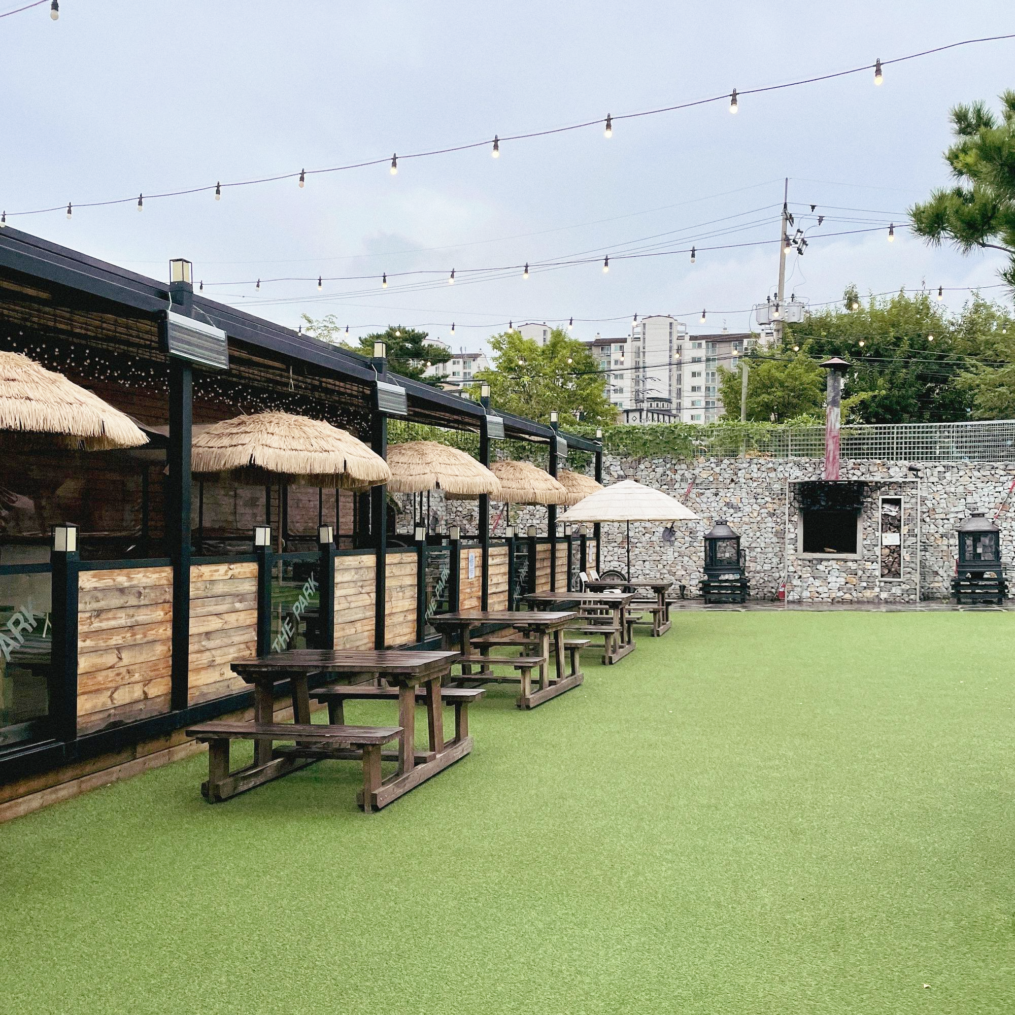 날씨만 쨍쨍했으면 짚으로 만든 파라솔 있는 쪽은 정말 제주도나 휴양지 온 것 같았겠지?